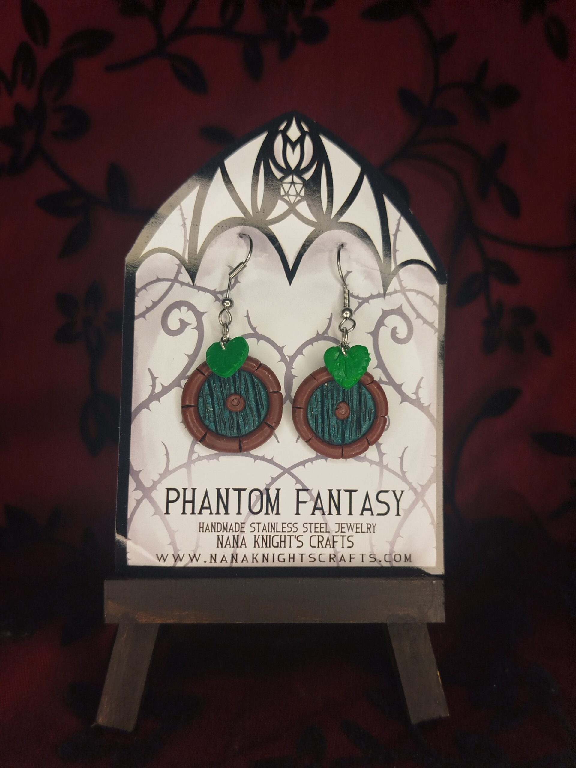 + Free ShippingSüthető gyurmából készült Hobbitlak ajtaját reprezentáló medállal, süthető gyurma levelekkel díszített kézműves nemesacél fülbevaló.