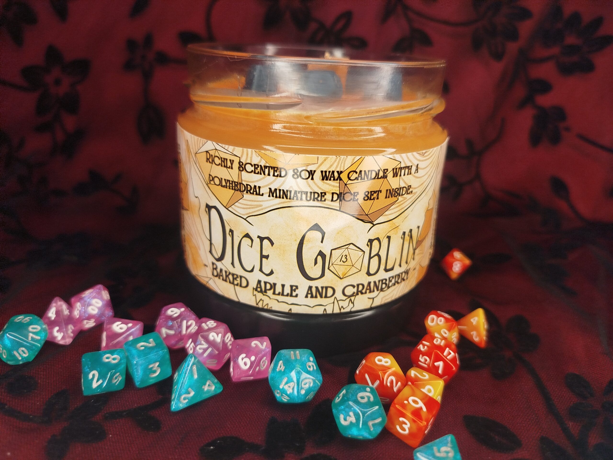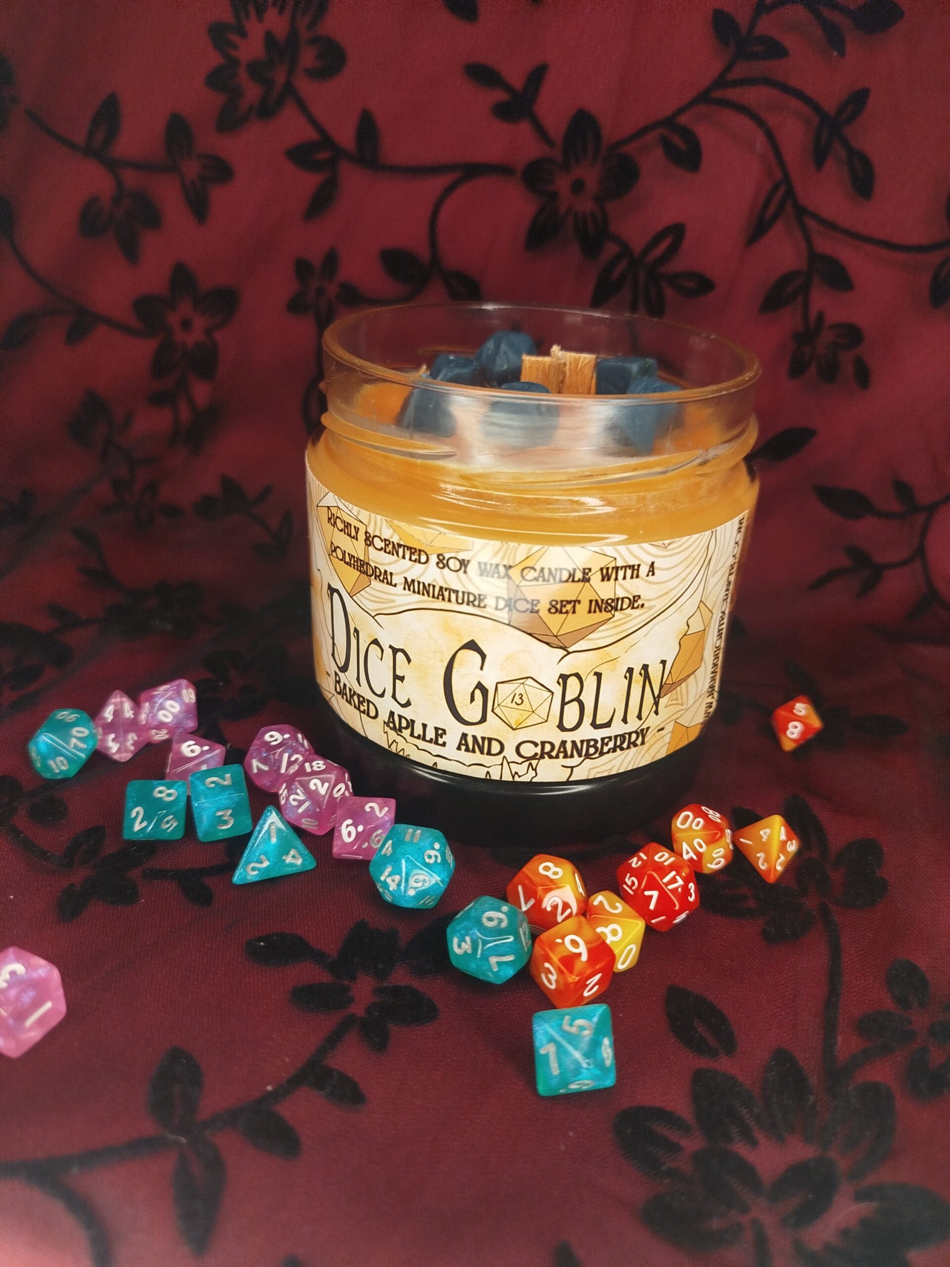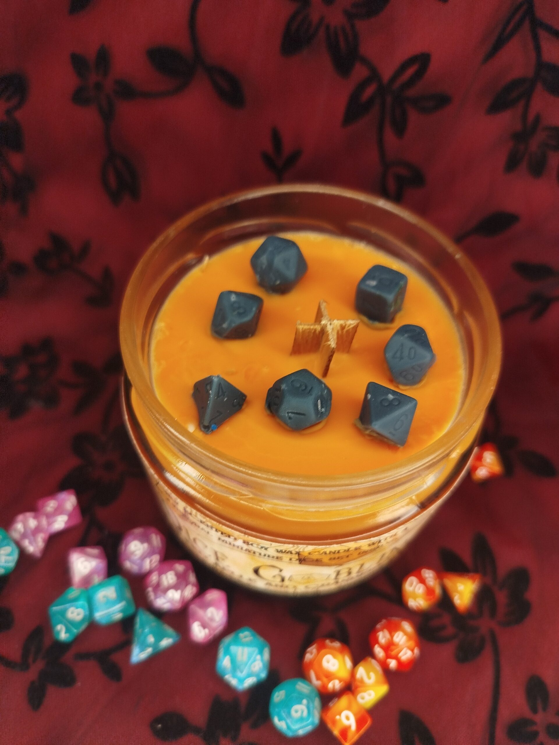 Intenzív illatú kézműves szójaviasz gyertya, ami ajándék miniatűr 7 darabos kockaszettet tartalmaz magában. A gyertyákban található szettek a szabvány méretnél jóval kisebbek, van köztük áttetsző, csillámos, örvénylő színű, és extra kicsi fém kockák.