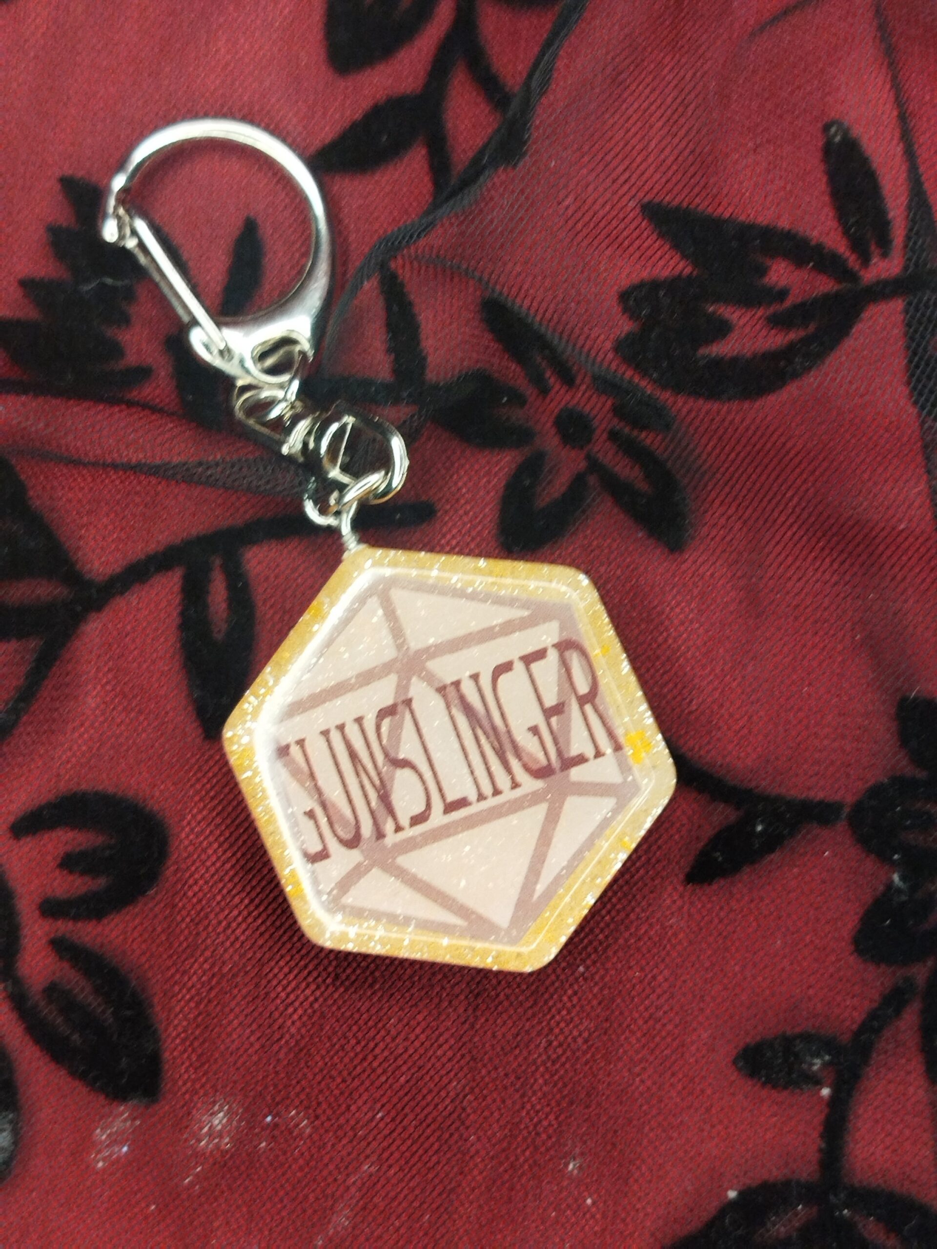 Gunslinger kulcstartó egyedileg tervezett felirattal műgyantából készítve. A medál átmérője 35 mm.