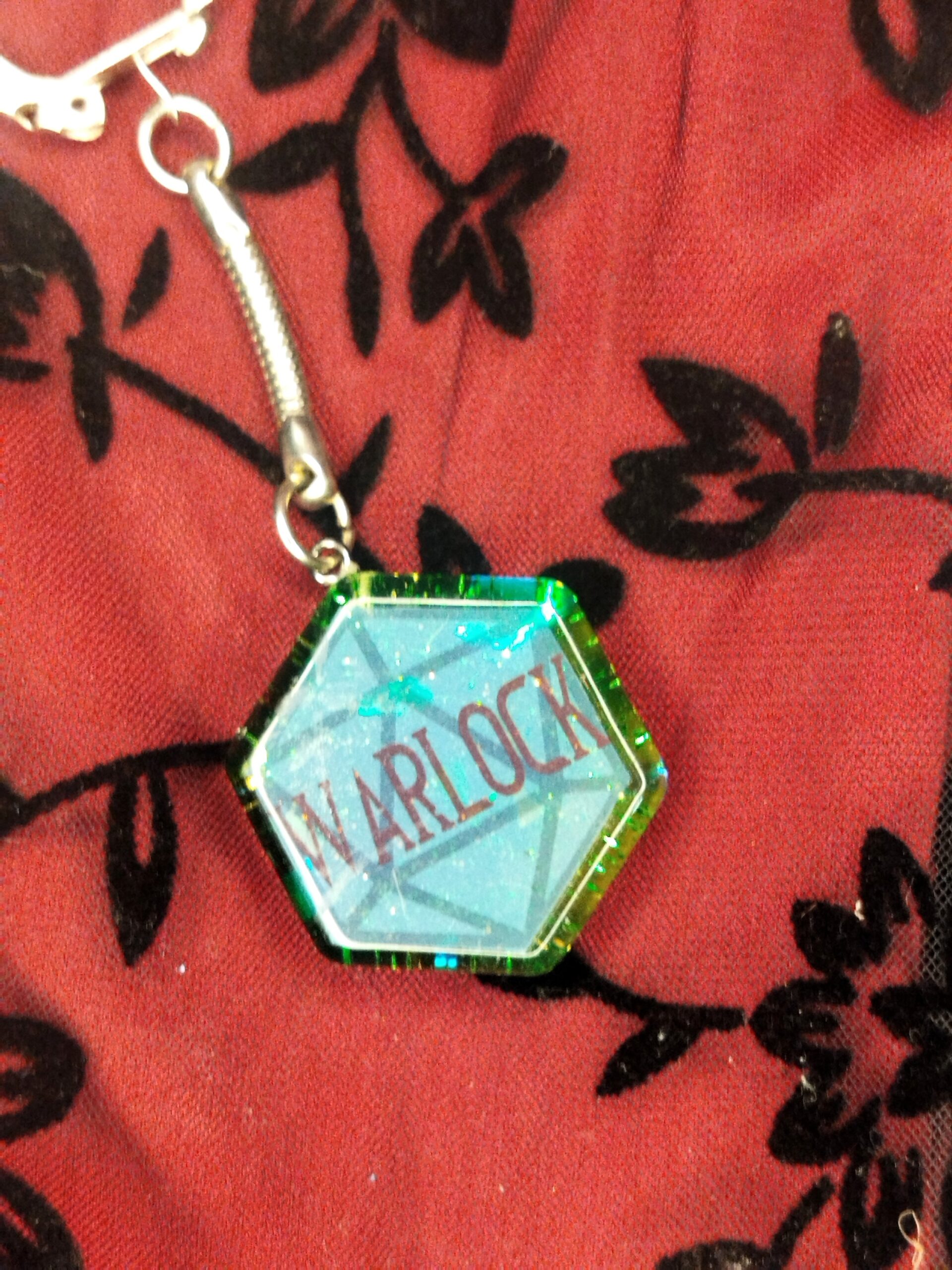 Warlock kulcstartó egyedileg tervezett felirattal műgyantából készítve. A medál átmérője 35 mm.