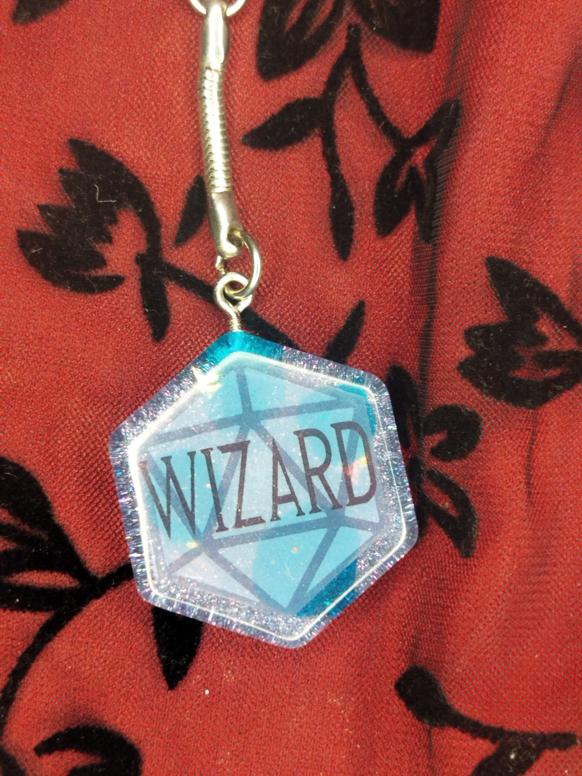 Wizard kulcstartó egyedileg tervezett felirattal műgyantából készítve. A medál átmérője 35 mm.