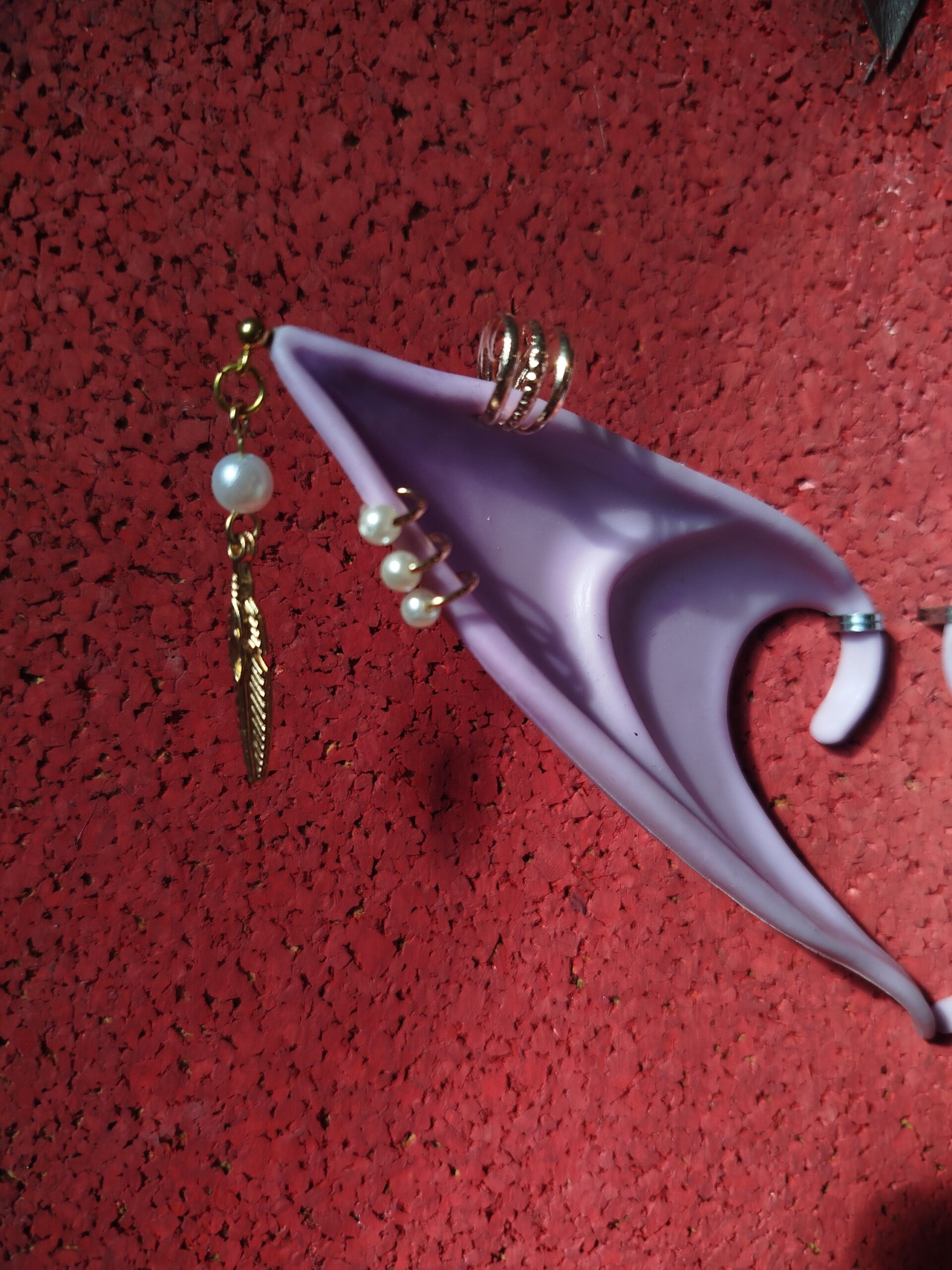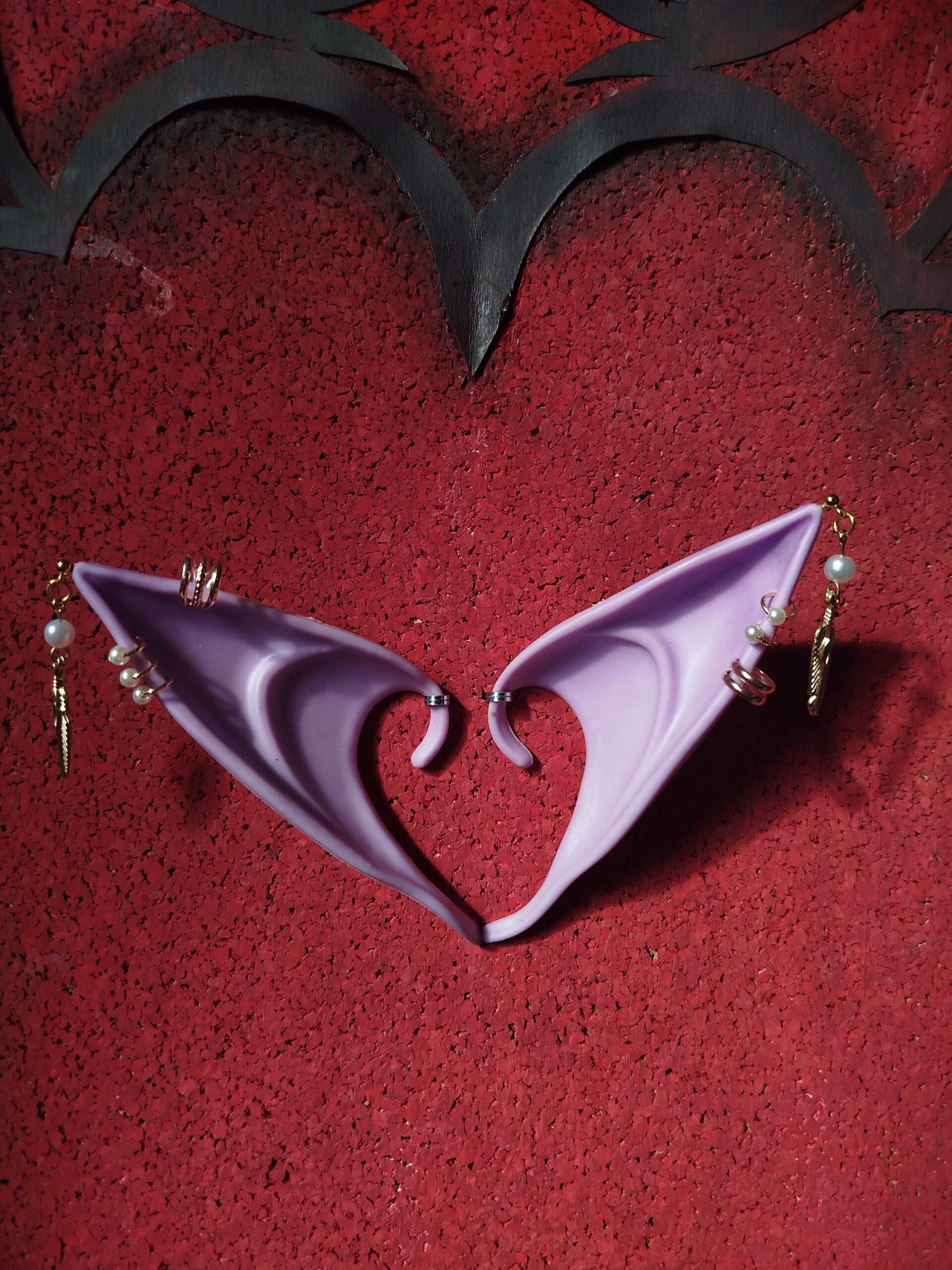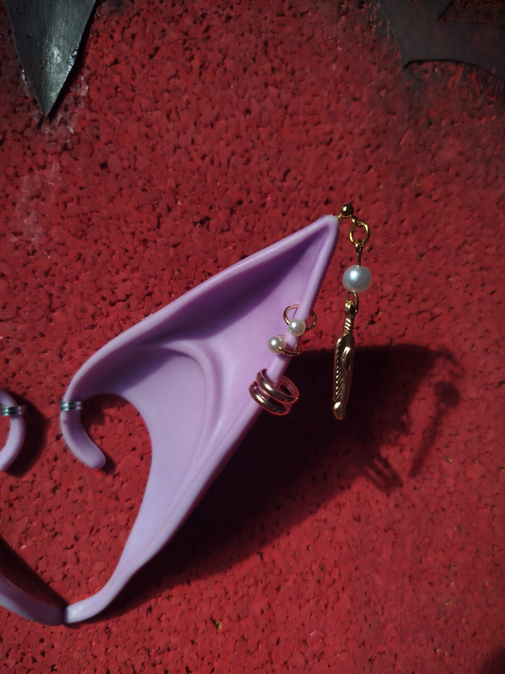 Szilikon alapú tünde fül kézzel díszítve üveg, ásvány és műanyag gyüngyükkel, nemesacél kiegészítőkkel.