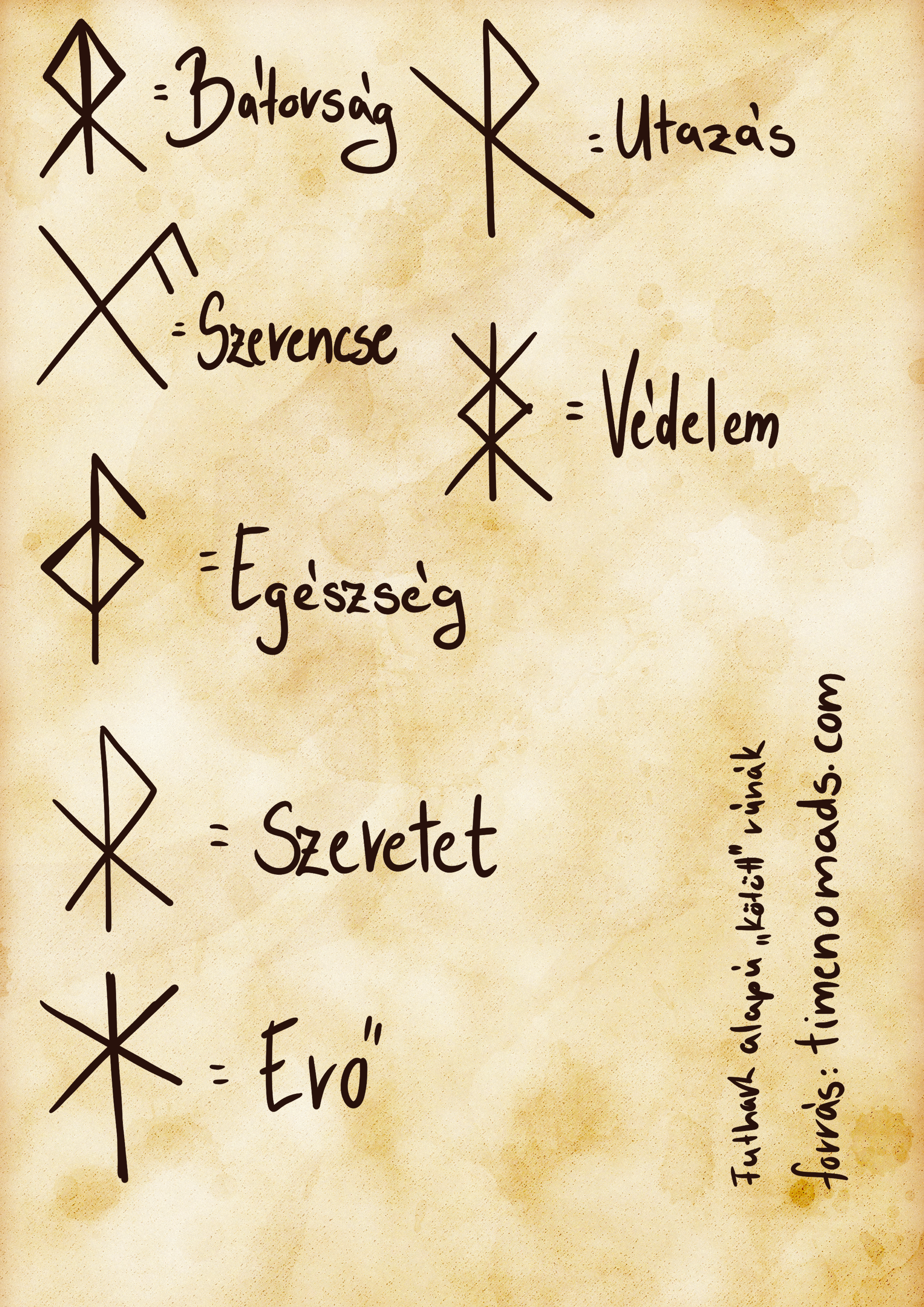 | Rúnák | Védelem, Szeretet, Erő, Egészség, Utazás, Szerencse, Bátorság |
